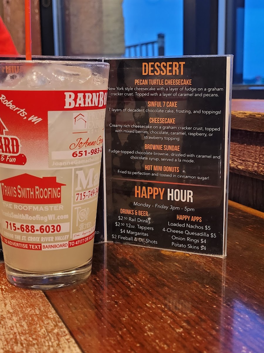 Nestled in the heart of Roberts, WI, Barn Board Grill & Saloon is a haven for food lovers seeking hearty home-style dishes. The menu is a delightful array of comfort foods, featuring standout items like the tender Open Faced Pot Roast Sandwich, served on Texas toast with real smashed potatoes, and the aromatic Whiskey Salmon Salad.